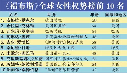 福布斯全球女性权势榜第一名!