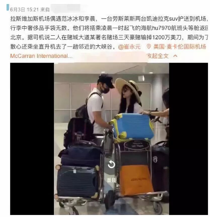 自从名嘴崔永元开撕范冰冰后,范冰冰一时间负面缠身,前段时间和李晨去了一趟美国,还被人怀疑成是不是想移民。还有网友爆料这两人在赌场豪赌1200万美元,看来是破罐破摔了。总之,在范冰冰赴美期间,谣言四起,说什么的都有。