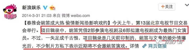 在出轨被曝光后的第二天,正好是北京电视节目交易会,在几天前印制的项目辑录中,姚笛还是最热门的女演员。到了辑录公开时,不少制片方已经改了主意。