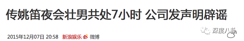 之后关于姚笛的绯闻就多是空穴来风和捏造。有传和壮男共处7小时,然后公司辟谣,说当时是一行四人在约谈工作。