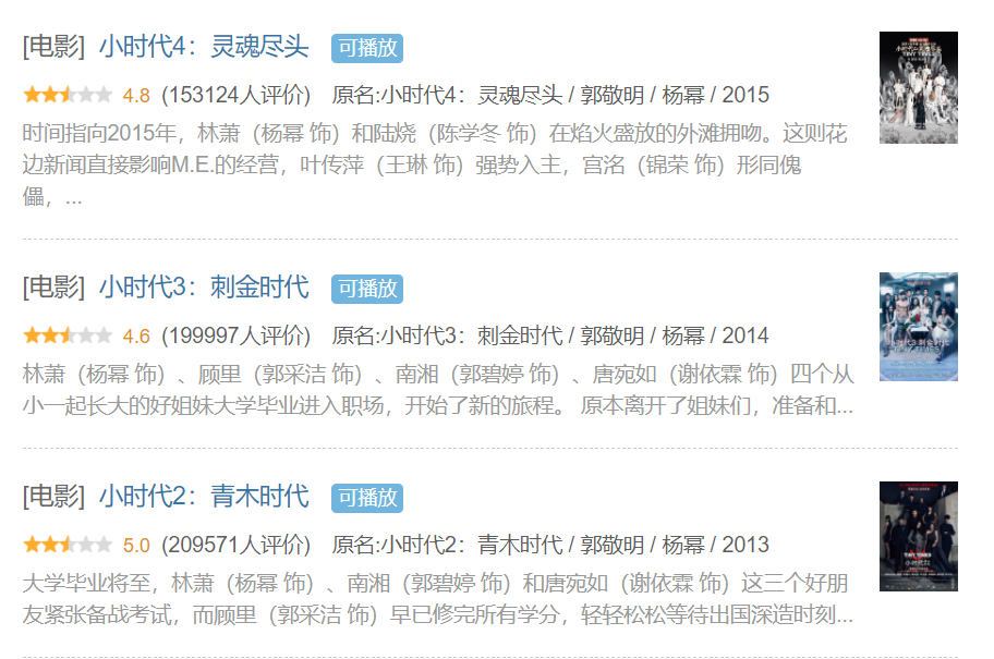 郭敬明执导的《小时代》系列电影豆瓣评分均低于5分