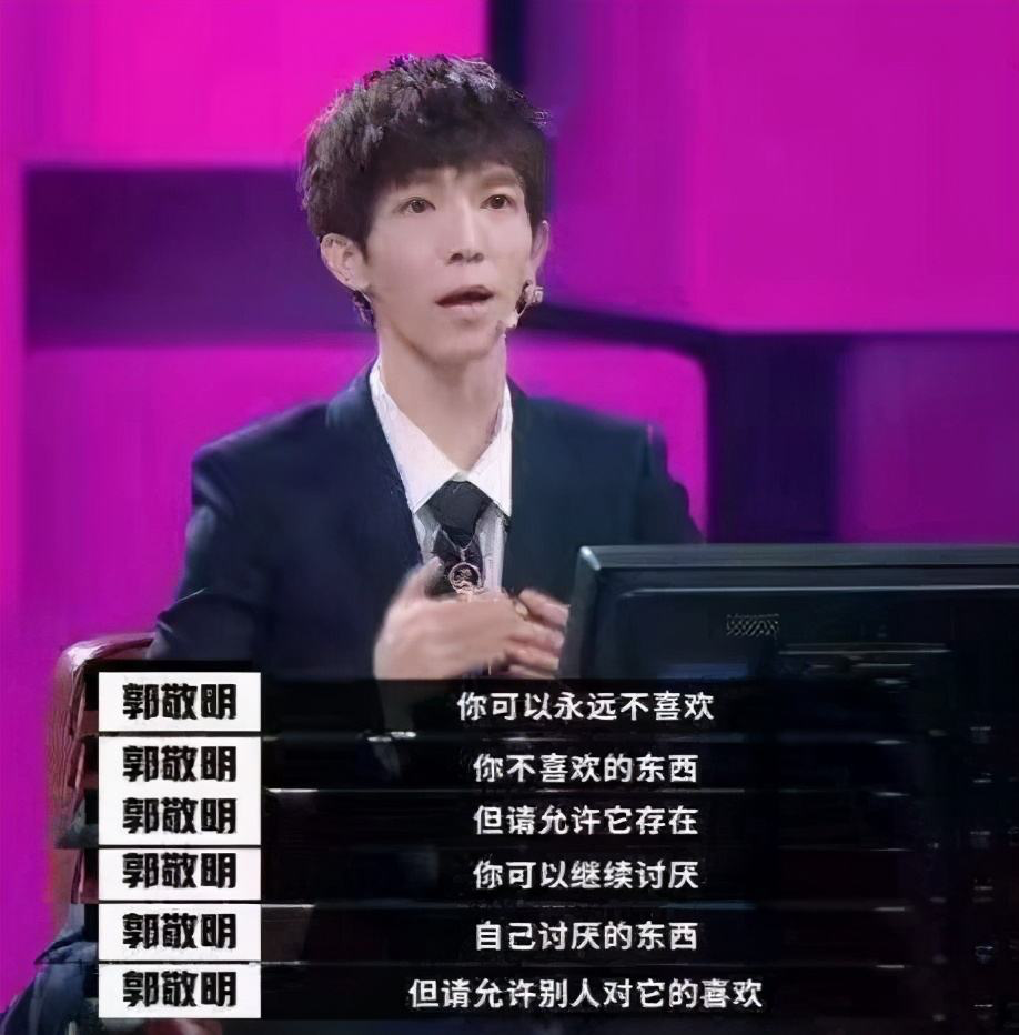 但郭敬明早已在舆论漩涡里练就一种口舌上精准的正确,那些看不惯郭敬明的人,真正厌恶的,恰就是他这种精准的说辞。