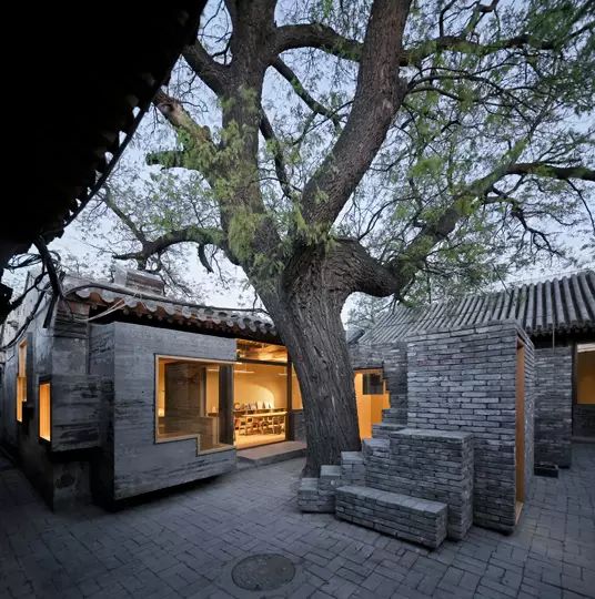 外墙用的全是灰砖,透露着胡同的情结。最有趣的是庭院里的30多棵树也是自己亲手挑选种植的。