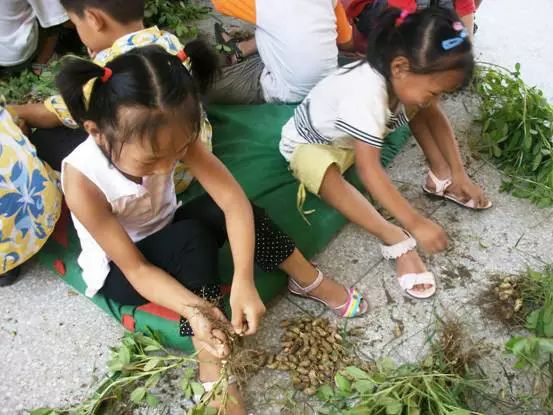 摘花生,很小的时候,没力气摘, 摘得手痛。