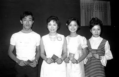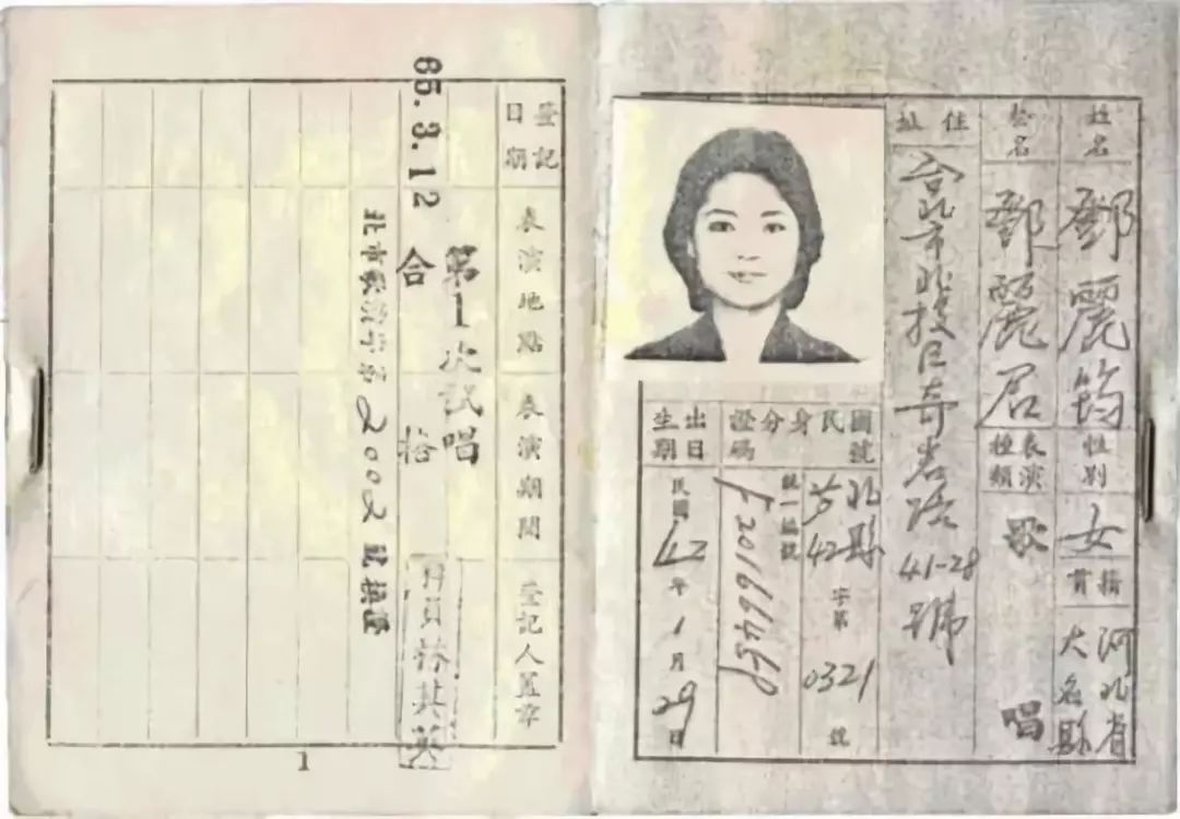 1966年,16岁的邓丽君(右2)拿到歌星证。左起:张帝、韩菁菁、邓丽君、涂昭美。
