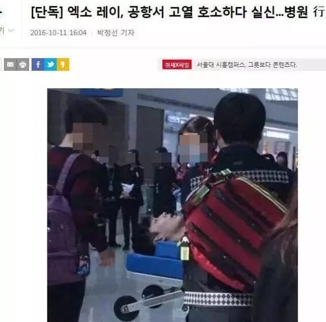 没过多久就看到微博上几个韩圈大V发布了小绵羊张艺兴又晕倒了的消息:即将和EXO成员们前往日本札幌三巡演唱会的张艺兴在韩国仁川机场候机时突然晕倒,失去意识的他随后被消防员送往医院