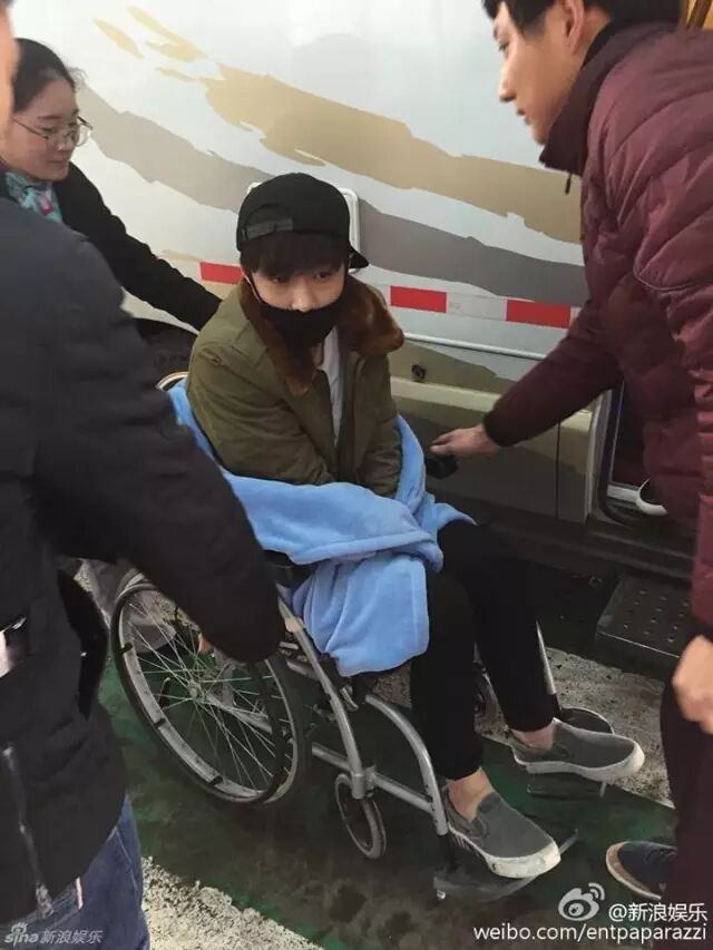 后被黄渤背起送去医院看病,坐在轮椅上的张艺兴嘴唇发白,可见身体很不舒服