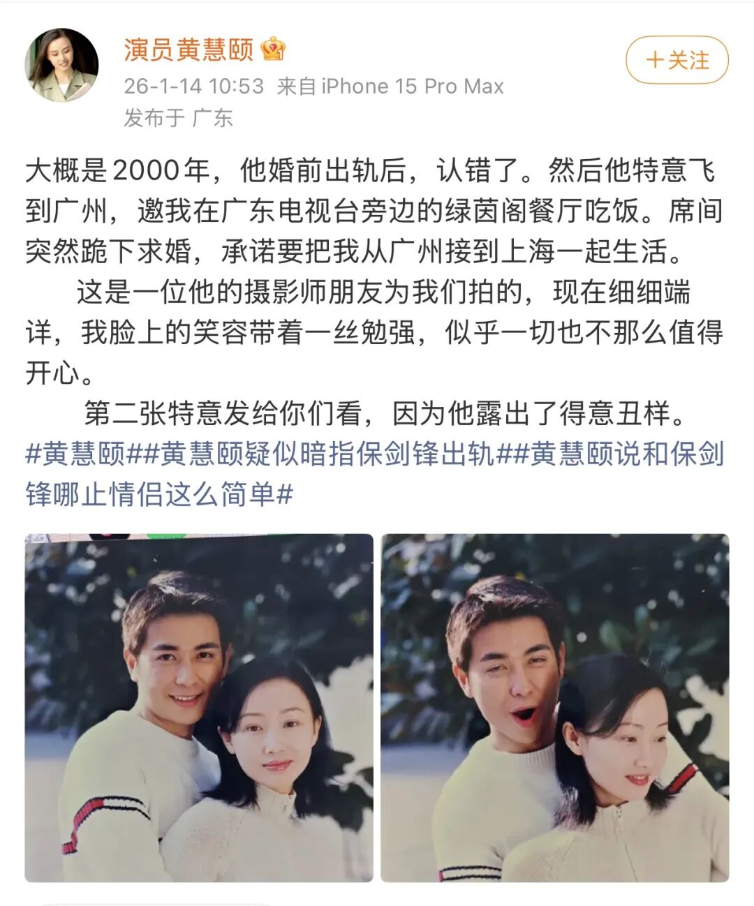 黄慧颐和保剑锋,对于年轻观众来说或许有些陌生,但对于当年的观众而言,却是一段唏嘘的往事。