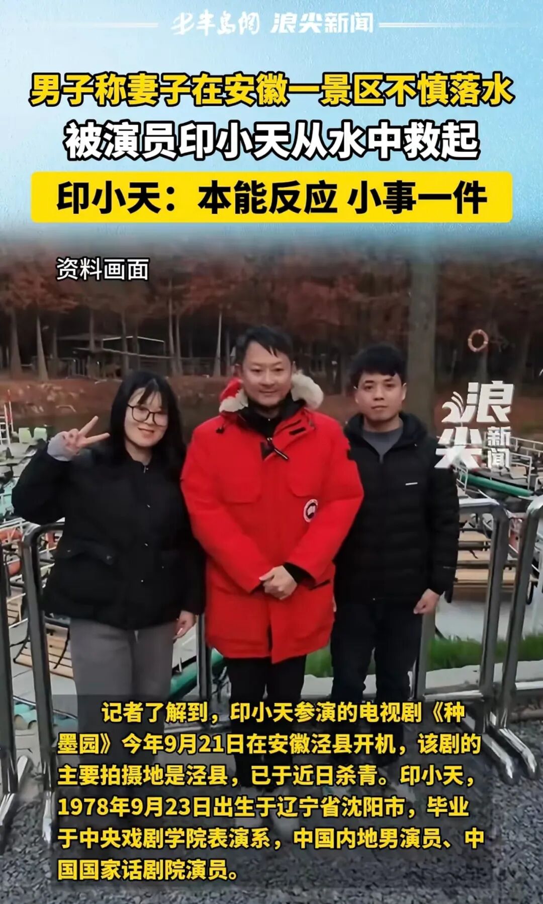 2025年12月7日,网民宋先生带着妻子前往宁国红杉林景区拍照时,偶遇演员印小天前来游玩,正欲上前拍摄文旅素材,意外突然发生——他的妻子在景区步行栈道上后退行走时不慎落水。