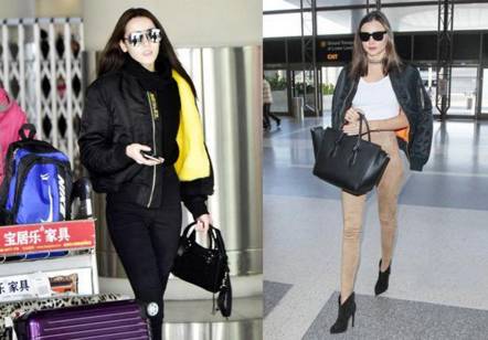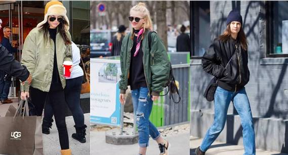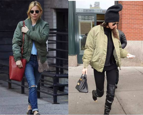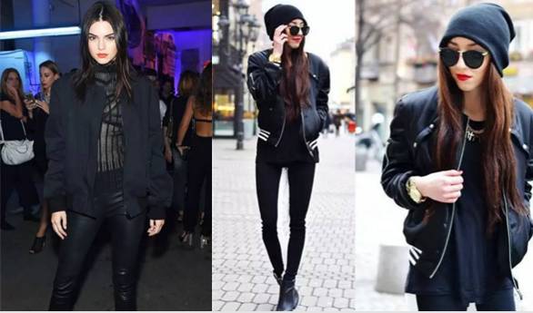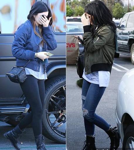 除了刚才说的,你可以当做情侣装,也可以当做闺蜜装。Kendall Jenner 和Gigi Hadid 俩人约会不约而同的都穿了飞行员夹克和Leggings,这是妥妥的闺蜜装啊!