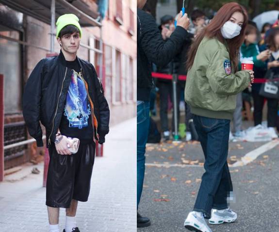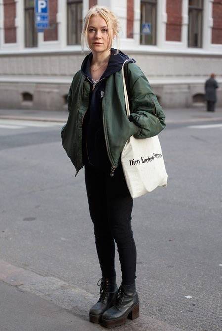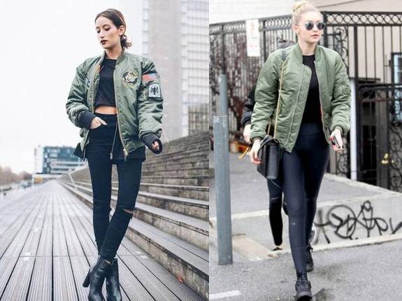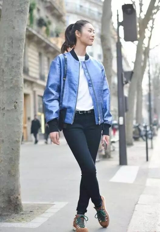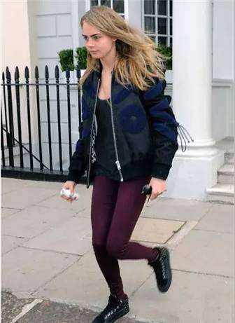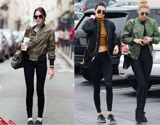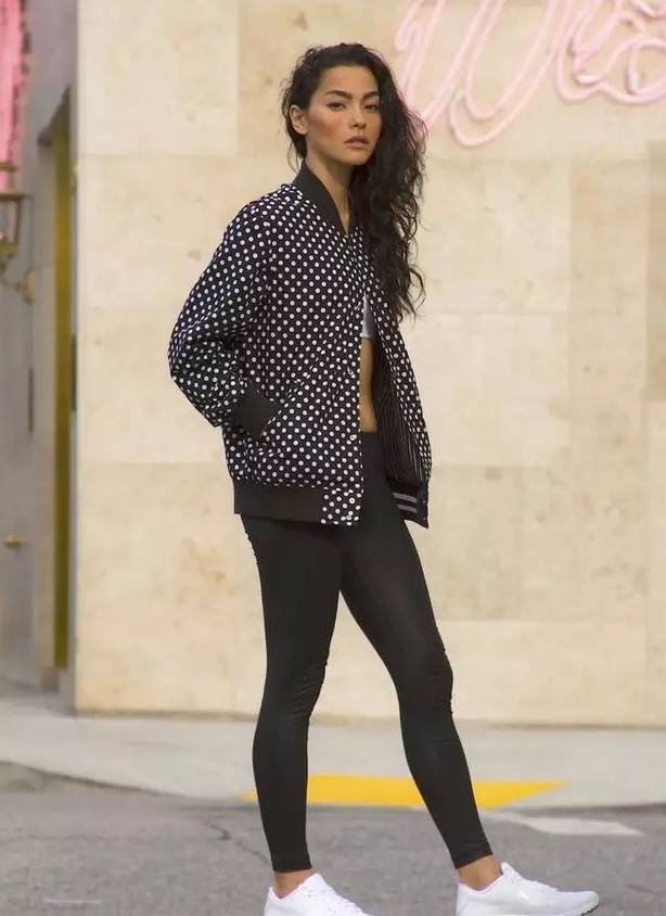 短款上衣搭配黑色Leggings,外套选择这款飞行夹克,真的是绝配啊!