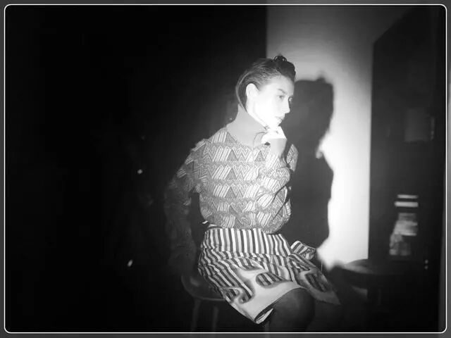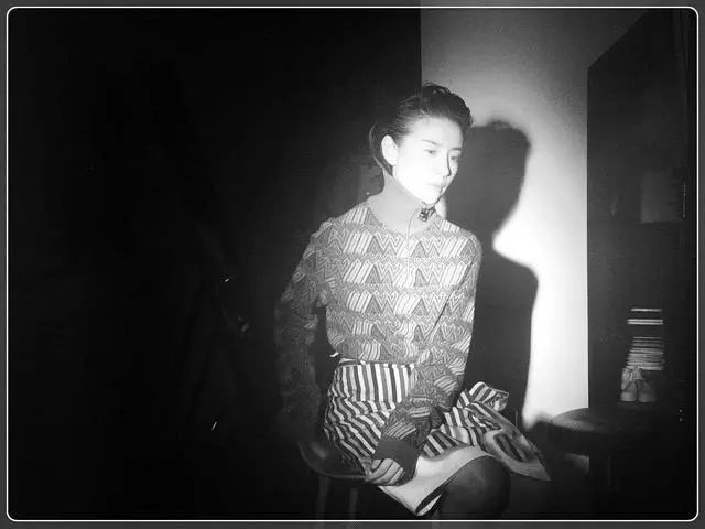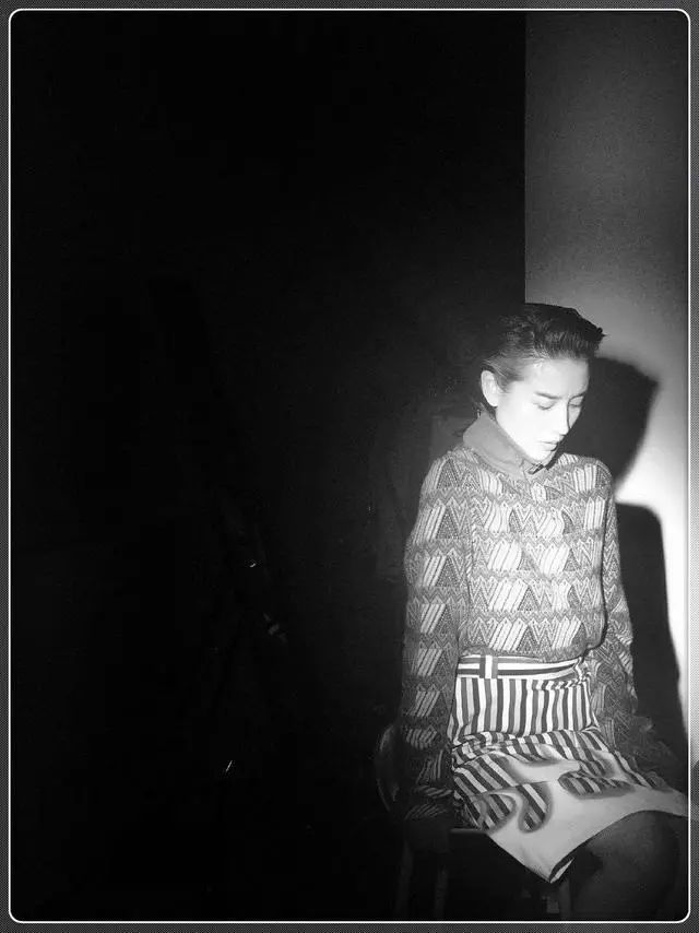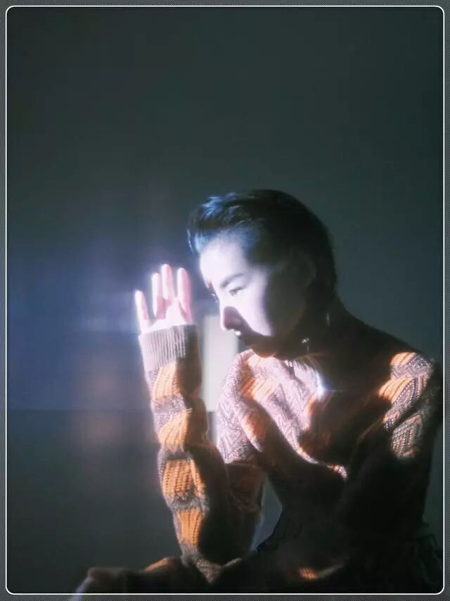 黑暗的房间里,只有一抹光线照耀在董洁身上,在墙上投下她的倒影,很美,董洁的侧颜很立体呢,好看的人,果然哪个角度都是好看的呢,手撑着下颚仿佛在沉思 很适合这个黑白的背景