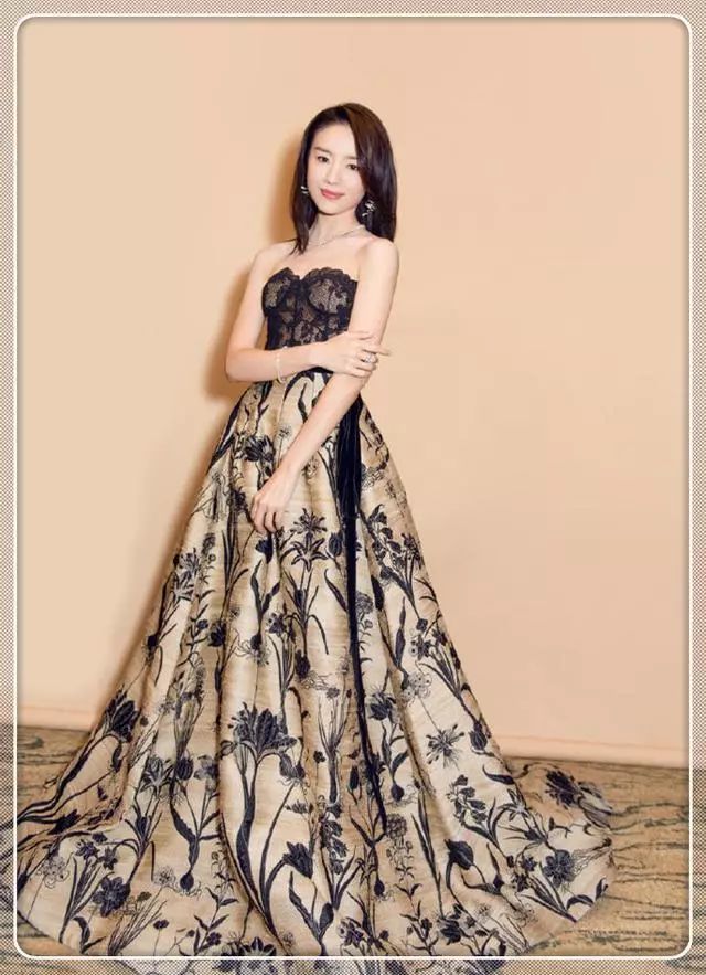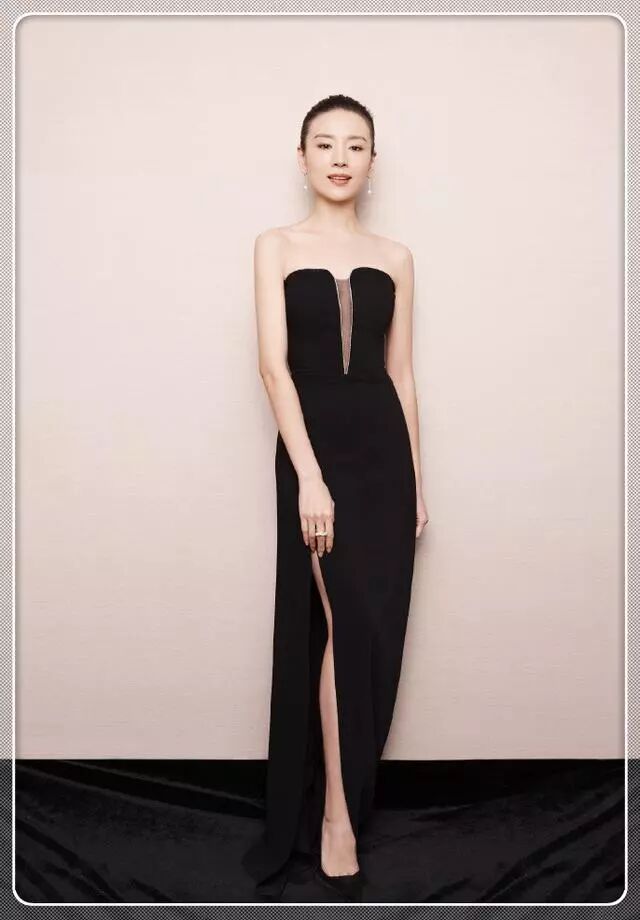 头发高高盘起的的董洁穿了一件黑色的抹胸长裙,大秀性感好身材呀,盘起的头发秀出她让人羡慕的天鹅颈,黑色的长裙很修身,让她看起来更加精致了,胸口的透视部分,秀出她性感的事业线,裙摆的开叉让她纤细白皙的大长腿若隐若现的,真是性感呀。