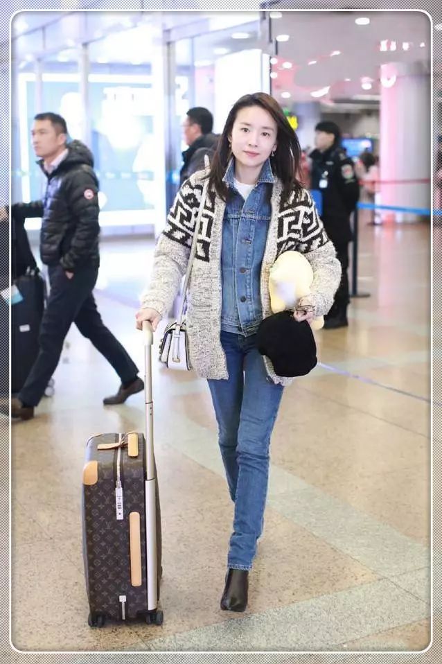 董洁这次的机场秀很成功呢,牛仔套装叠穿灰色的针织开衫,很有自己的特点,白色的T恤内搭,很百搭,白色的T恤真是人手一件的单品呀,完美驾驭各种风格,短款的牛仔外套,让她的身材比例看起来很完美,紧身的牛仔裤搭配黑色的高跟鞋,真是穿出了超模腿,看来只要会搭配就能穿出完美好身材。