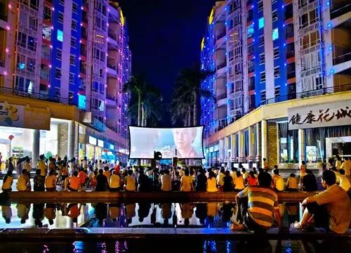 最震撼的露天电影,畅饮啤酒再配上酷炫电影露天电影,简直酷毙了!(图片来源网络,花海将在花市大屏前观看露天电影)