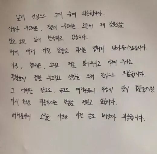 媒体曝出来时 你马上手写了道歉信 把责任都揽到自己身上