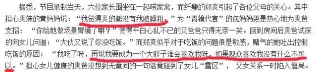 这期节目中,郑爽一时赌气,吐露真言,称:怕胖了没人喜欢。