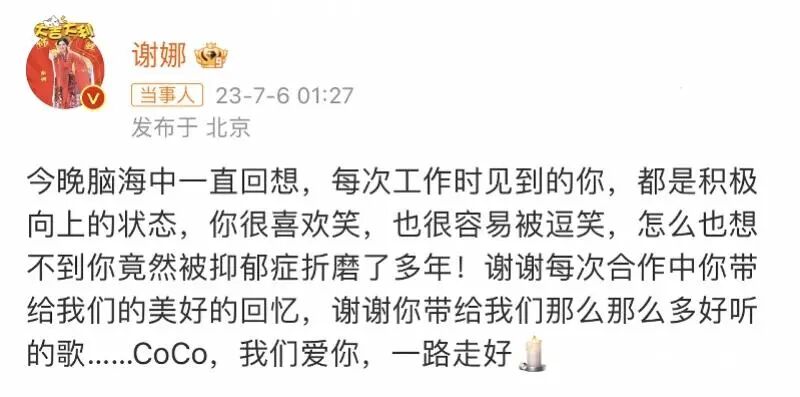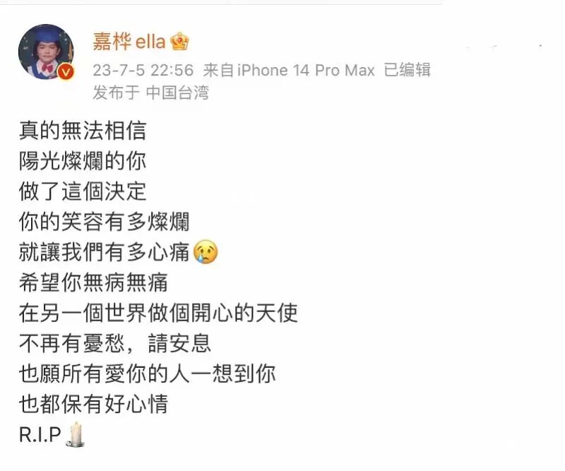 李玟二姐透露抢救细节!“母亲死也不肯放弃” 南方都市报 港台女星 2023-07-06 15:21:50 366 创作不易,用心坚持,欢迎请BaGua喝几杯爱心咖啡!打赏并支持本文 打赏并删除本文 知名歌手李玟去世的消息令全网震惊与痛惜,她因抑郁症于7月2日在家中轻生,经多日抢救无效,最终于7月5日离世,年仅48岁。二姐透露更多细节李玟去世的噩耗公开后,二姐李思林接受媒体访问。南都记者对媒体访问录音核实了解到,过去几天她一直没有睡觉,形容自己的心“像粉碎了一样”,不敢相信这件事情的发生。“我每天走进病房,看着妹妹的心跳仪器、呼吸指数,每一秒都盯着看,发出的嘟声让我浑身颤抖,因为医生说她随时会离开,也叫我们做好最坏最坏的打算。”李思林表示,最心痛的就是看到80多岁年迈的母亲,从9点站到11点都不肯坐下,母亲是一位中医,当时李玟的脑细胞已经死亡,但母亲死也不肯放弃抢救女儿,为了尽最后的努力,在头顶施针,“总之就是心酸,白发人送黑发人。”李思林还透露了李玟处于生死边缘时的更多细节:“李玟被送进医院时,医疗团队已经说没救了,叫我们放弃,我说妈妈不到四十岁就失去丈夫,妹妹就是那个时候出生的,她一个人很辛苦才养大我们,请医生给妈妈、也给妹妹一个机会,就算只有一线生机也要尽力,所以很谢谢医生和护士们的努力。”圈内艺人悼念李玟去世的消息传开后,众多圈内艺人通过不同渠道表达痛心与悼念。在众人的印象当中,李玟总是展现阳光、开朗的一面,似乎永远充满正能量,却不曾料到她饱受抑郁症困扰多年。香港新生代歌手炎明熹(GiGi),在去年的爆款综艺《声生不息·港乐季》中曾与李玟合作,她当时接受南都娱乐的专访,曾表示CoCo李玟很照顾很疼爱自己,最初正是在李玟的提议下,炎明熹才与杨千嬅合唱一曲《勇》,之后她鼓起勇气与节目更多的前辈歌手合唱,越战越勇。7月5日晚,听闻CoCo姐轻生去世的消息,炎明熹难过得止不住哭泣。经纪人代为向南都记者表示,一看到消息GiGi就一直在哭,在工作中也收不住眼泪,心情无法平复下来。李安通过助理缅怀李玟: “听到李玟的消息非常震惊,印象中她是那么一位开朗可爱的人,回忆跟她录制《卧虎藏龙》片尾歌时,一切是那么令人愉悦。还记得她当年在奥斯卡颁奖典礼演出时说,作为首个在奥斯卡奖上唱歌的亚洲人,一定要拼命地唱。”林俊杰发文称:“好痛。感叹人生为何没有更善待你美好的心灵。世界从此又陨落了一位极具代表性的歌手与艺人。亲爱的CoCo(我们的音乐战士)失去了你,音乐宇宙将不再如昔。”萧亚轩发文写道:“我们损失了娱乐圈第一名的唱跳天后,她是我的启蒙老师,从我小时候她就是我的天后。我会永远记得她开心的样子,我很心痛⋯⋯她永远在我心里面一辈子,她最后跟我说的一句话是Elva,come back,singing”成龙、张信哲、杨丞琳、黄丽玲、徐佳莹均晒出与李玟早年的合影,回忆与李玟相处的片段。成龙:“你是天生的明星,拥有那么厉害的天赋和独特的个人风格,你的嗓音、舞蹈和阳光般的笑容,影响了无数的人。你带给这个世界很多很多。天上从此又多了一颗星,愿那里再无病痛。安息。”张信哲:“永远不会忘记爱笑的你。”杨丞琳:“我的第一个偶像,我的榜样,总是热情正向地面对观众,总是用温暖鼓励对待后辈,真的真的很心疼,只愿你不再痛苦,你永远活在大家的心中。R.I.P Coco”黄丽玲:“那年见到你,我紧张发抖地跟你说,我有参加过你的歌友会。现在的我也发抖听着你的歌,愿你一路好走。谢谢你的音乐,你的乐观,影响好多好多歌迷朋友,我们永远想念你。”徐佳莹:“爱你。我最初的偶像,永远的天使,一定是去了可以平静安心的地方。请原谅……我会任性当成你没有离开,因为我的很多时光与你有关,也一直认为还会再相遇⋯⋯只是今天就先这样了,晚安。”邓紫棋:“我的天,我不敢相信,你总是带着甜美温暖的微笑。你总是充满勇气和魄力,去面对一切风雨挑战。我无法想像你经历了多少,无法想像你笑容背后,藏着多少的痛。我会一直想念你李玟,Rest in peace。”那英遗憾道:“好难过,还没等到我们俩合作,你就走了,好难过。”舒淇、郎朗、谢娜、张小斐、黄晓明、王心凌、陈嘉桦、毛不易、张韶涵、李宇春、张杰等圈内艺人也纷纷发文悼念。李玟2022年参与录制过节目《声生不息》,其节目官方微博写道:“很抱歉,我们在感受温暖时,没想过太阳会落山。歌手李玟,一路走好。世界会记着你的余温。”李玟的音乐代理公司华纳音乐也发布微博,“李玟自1994年出道以来一直享有辉煌的音乐生涯,她是华人的骄傲,她的履历一直被所有人深深记着。CoCo不仅将东方音乐和文化之美带到全球观众的视线中,并且用歌声、舞蹈以及正能量让大家感受到她希望带给大家的力量。虽然CoCo离开了,但希望她的爱和光芒永远照耀着我们每一个人。”南方都市报(nddaily)、N视频报道南都记者 钟欣 蔡丽怡图片来源网络 ▊ 南都君特选(戳下方标题) 点亮关注 ↓↓ 创作不易,用心坚持,欢迎请BaGua喝几杯爱心咖啡!打赏并支持本文 打赏并删除本文 感谢您的支持鼓励,我会继续努力的!文章地址:用户邮箱:打赏金额:USDT 请输入数字点击”去打赏“,即可进行打赏支持本文章哦 李玟 发表评论