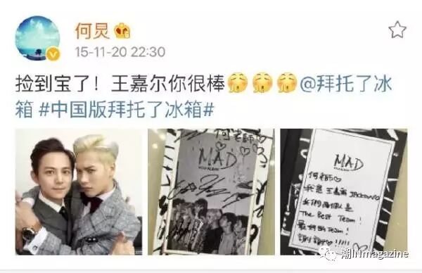 话说他与韩国GOT7成员王嘉尔(出生于中国香港)合作了两个综艺爆款《拜托了冰箱》和《透鲜的星期天》,两人在里面的化学反应深受电视粉喜欢,两人的CP名字叫做“何尔萌”。看过节目的人都说,何老师把王嘉尔宠上天了!