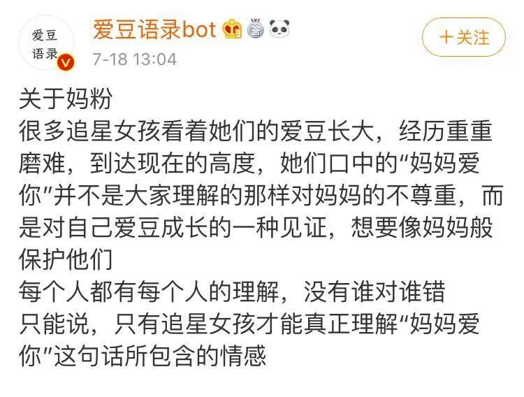 而当“妈粉”这种小圈文化放到台面上,除粉丝群体外的路人不能接受,也完全可以理解。那就粉丝自己在私下悄悄说,不要给别人造成影响就好了不是吗?