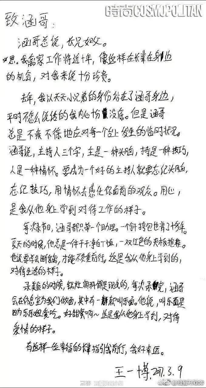 王一博也非常感恩汪涵的提点,还亲手写过感谢信。虽然字不好看,但还是满满真诚▽