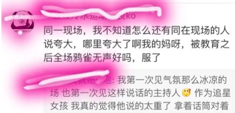 就算是汪涵不能够理解这种饭圈文化,觉得在场的粉丝说“妈妈爱你”的行为不恰当,但分明是有更好的提醒办法的。