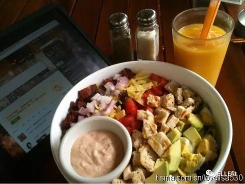 ▲ 在外觅食,蒋丽莎吃得也是颇为健康。这种健身博主相册常出现的色拉和三明治,没错,也是她最常po的食物。