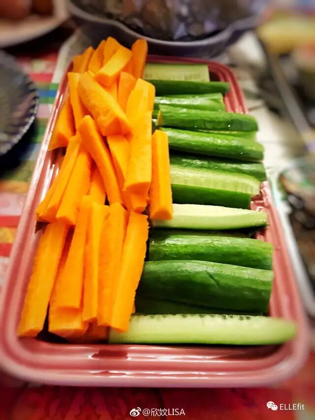 ▲ 平时家宴当中都会有一盆新鲜的蔬菜。不做任何的烹调和处理,为孩子和自己补充一些膳食纤维和维生素,还能在餐前增加饱腹感,后续的餐食就不会吃太多了。