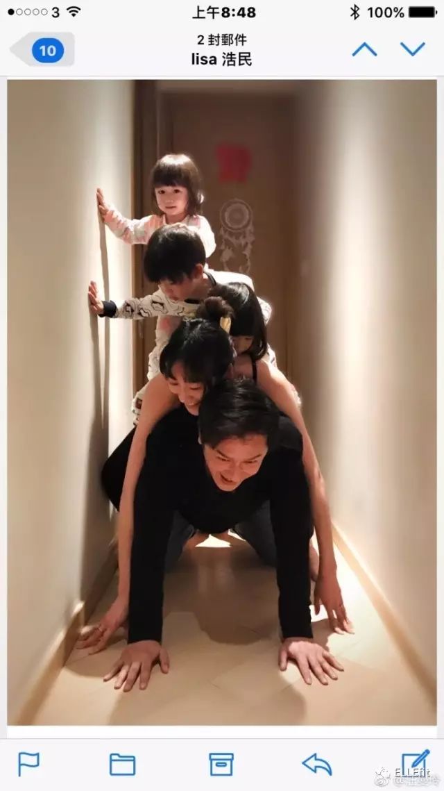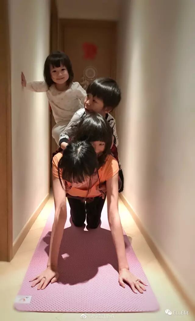 ▲ 平时规律的运动也不能落下!利用宝贝们叠罗汉是蒋丽莎的运动法宝,而且,还要拉着爸爸一起虐!宝宝们负责叠罗汉玩耍,爹妈负责负重训练。真是寓教于乐的亲子运动!
