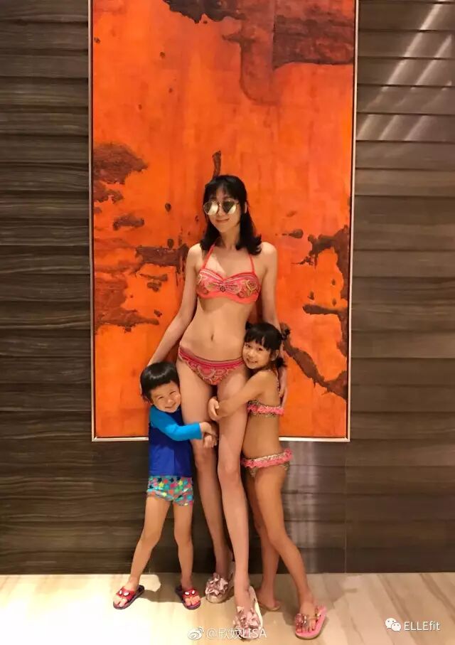▲ 穿着泳衣,露出纤细的四肢和小蛮腰,哪里看得出Lisa刚生完老四也才一年而已!