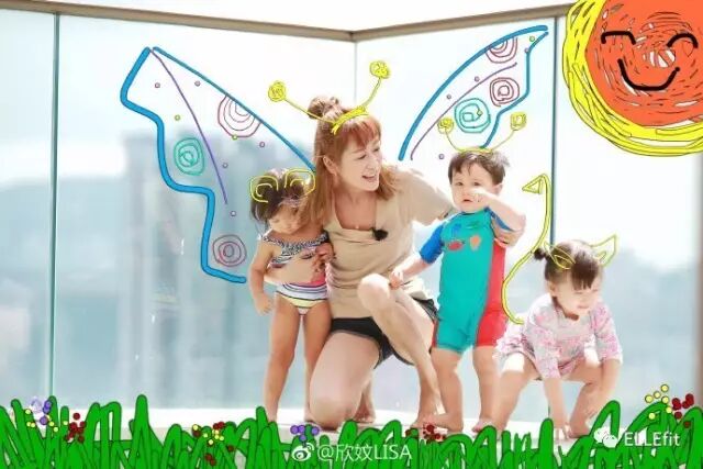 ▲ 蒋丽莎非常喜欢游泳!所以三个孩子很小开始,就被送去学习游泳。蒋丽莎陪着她们一起学习的时候,还能顺便在泳池里游几圈。一边带孩子,一边运动,两不误!