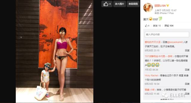 如今可以一手扛起三个小孩的Lisa,可不是靠天生底子好才能hold住“无敌妈妈”的称号的!孕前节制饮食,孕后边陪孩子边训练的习惯,才能变成现在宛若少女的好身材!看看自己的肚子,是不是觉得还不如孕妇?
