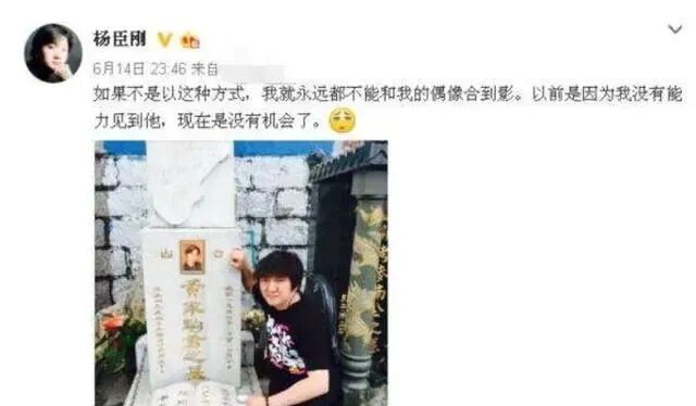 那年的6月11日,也就是杨臣刚自诩偶像的黄家驹诞辰的后一日,他忽然发布了一条去家驹墓前祭拜的视频。