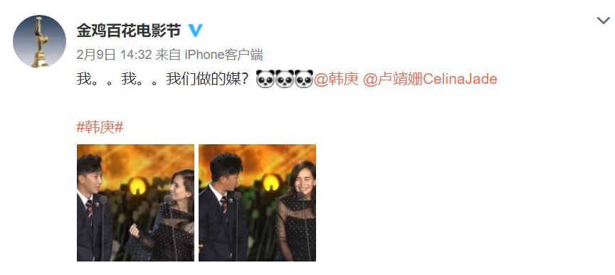 怎知,金鸡百花奖官方微博直言不讳的接下这个答案,“我们做的媒?”