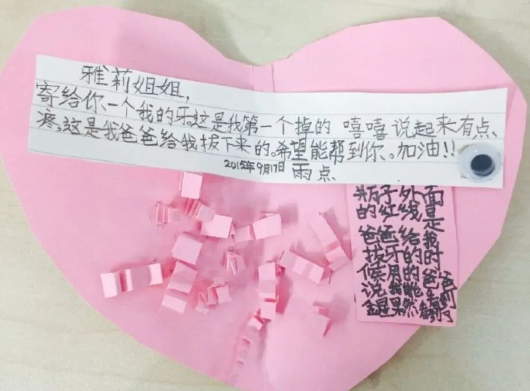 比如,一名叫雨点的小朋友寄来的乳牙,就被她做成了一枚精致的鹿角戒指。