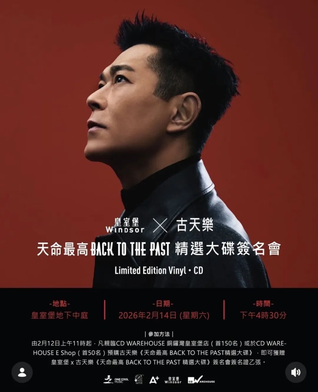 古天乐全新精选专辑《Back to The Past》今日正式发售,同步推出 CD 与彩色黑胶版。下午,古天乐现身铜锣湾皇室堡举办签名会。现场气氛极其火爆,前两天的预购派筹已让商场水泄不通。面对唱片被抢购一空的情况,他在台上承诺一定会加印,不负歌迷期待。