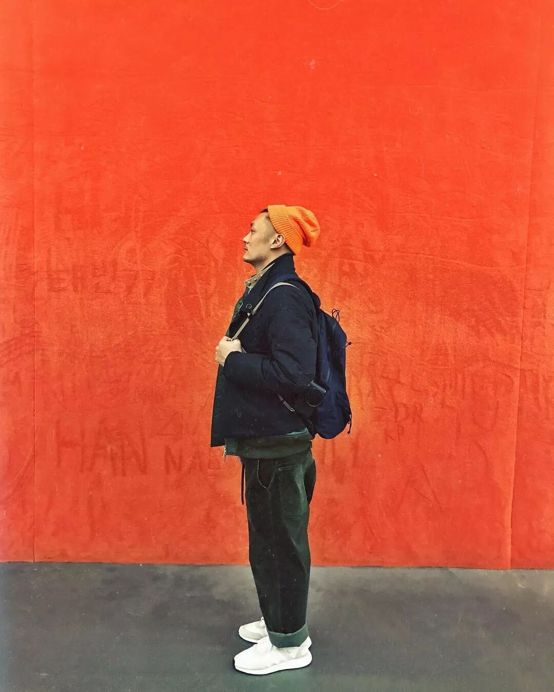 例如你们的6叔余文乐,熟悉的工装简约风格,暗色调的外套叠穿、宽松的牛仔裤,搭配白色 adidas Iniki Runner,最后一顶醒目的亮橘色毛帽点亮全身。