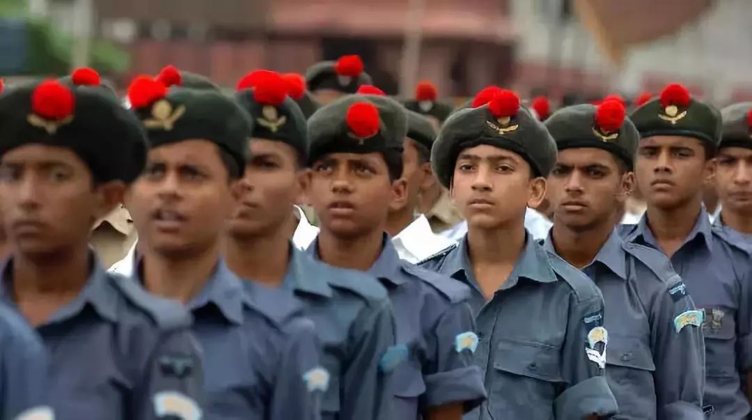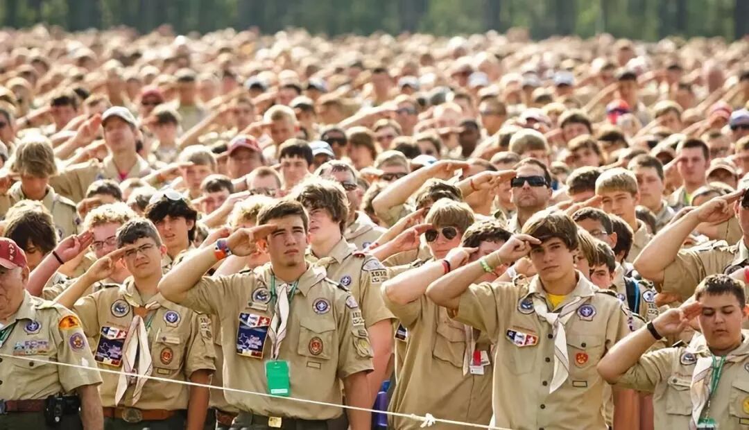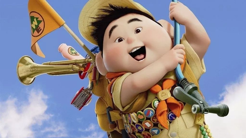 罗素身穿棕黄色制服,戴着小军帽和领巾