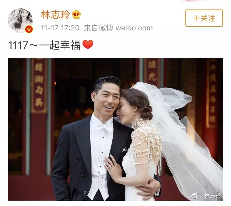 就在不久前,林志玲在微博发布了喜讯:1117~一起幸福❤️