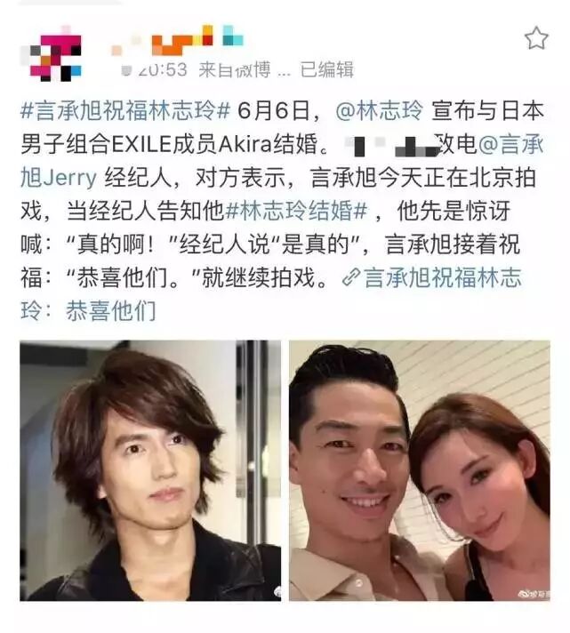 之前,言承旭听说林志玲结婚的消息,由一开始的不敢相信,最后也大方送出了祝福“恭喜他们”。