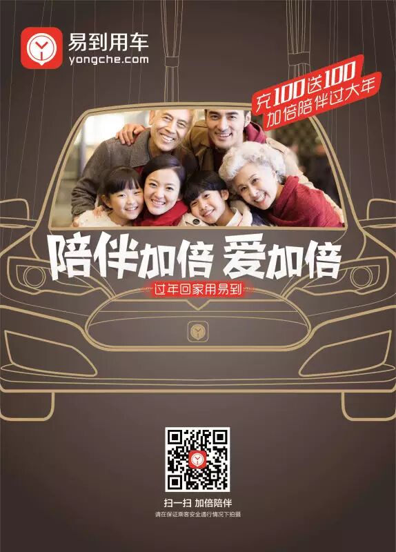 春节日益临近,易到用车也上线了主题为“陪伴加倍,爱加倍”的广告。这组广告中,易到延续了一直以来的暖心风格,提出了“过年回家用易到,加倍陪伴过大年”的Slogan,倡导大家过年能够抽出时间陪伴家人。
