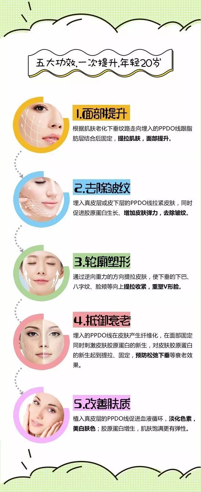 线雕就是向皮下SMAS层埋入医用可吸收缝合线(PPDO线),来实现面部提升的目的。