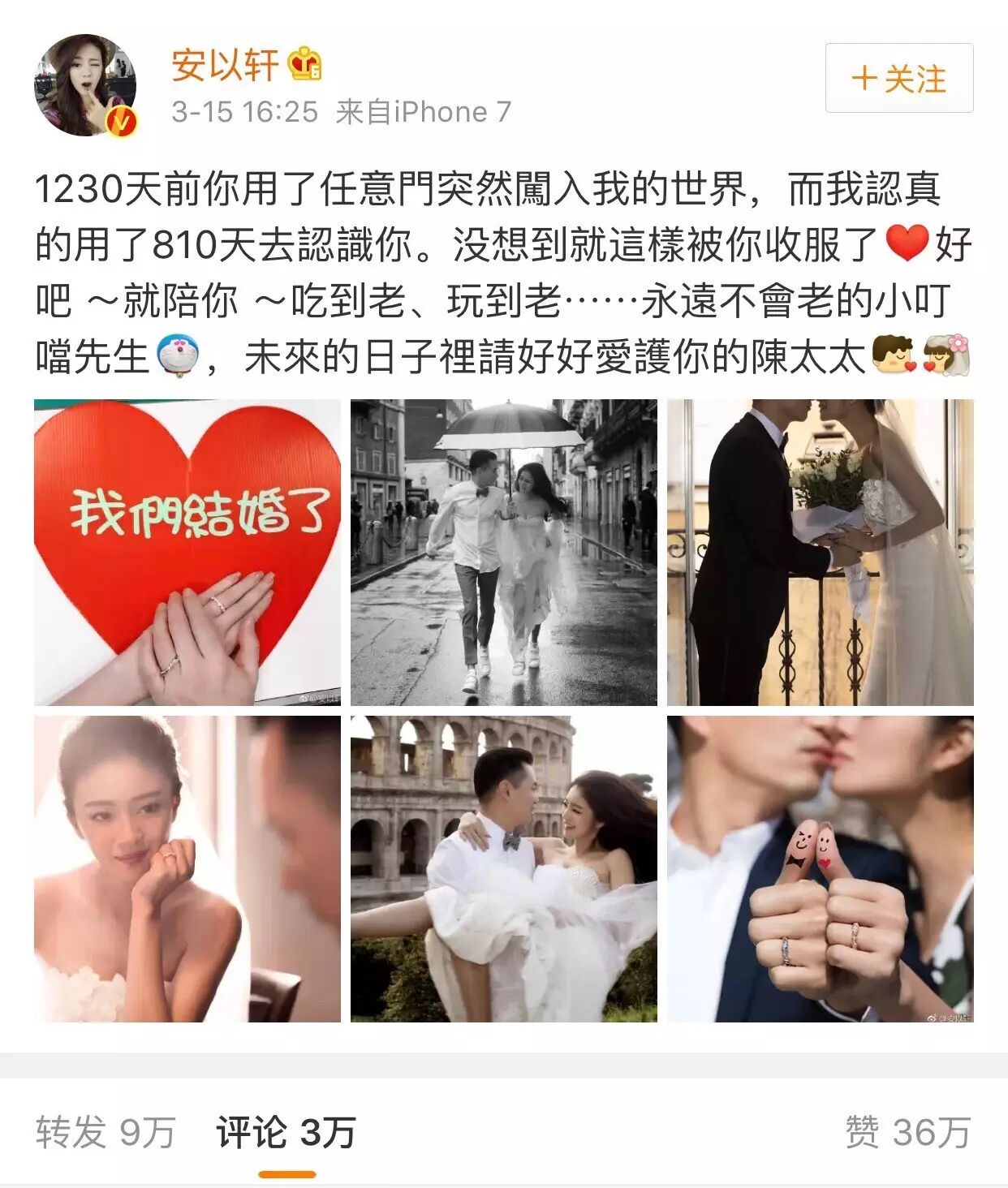 下午刷微博的时候,被安以轩突然宣布结婚的消息感动。