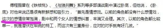 甚至于接受采访时,傅程鹏表示了这次拍摄对他很有新鲜感和吸引力。