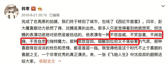 (沈腾)小人物的窘境,配上(韩寒)忽然迸发出的“神来之笔”台词,以及猝不及防的神经质表达。