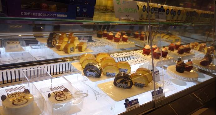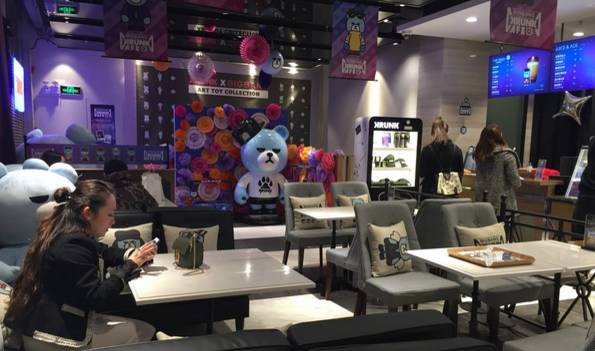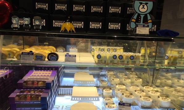 柜台里的蛋糕和慕斯小瓶都印着KRUNK熊,属于他们的元素无处不在,仿佛我们就身处在韩国首尔。