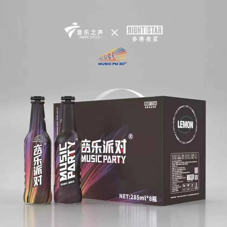 音乐派对,是夜星酒业于2019年隆重推出的一款网红苏打酒潮饮品牌,酒精度为3.5%vol,口感超然出众,受到了众多年轻消费群体的喜爱,“爱音乐、畅饮音乐派对”成为了音乐爱好者的最佳拍档。