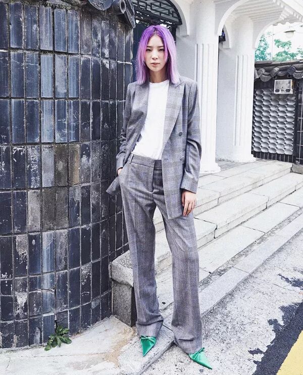 拥有一套剪裁时髦的套装绝对能让你变身气场Girl,Irene Kim的穿搭展现了轻松却正式的气质,既不老气又不失时髦感。例如她会给经典的格纹套装搭配上一双亮眼的尖头鞋。