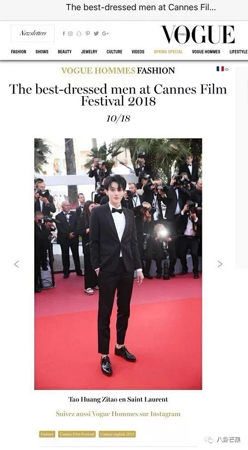 去戛纳电影节,被评为最佳着装之一,所以他说自己很时尚并没有夸张啊!只是比较直接而已啦~