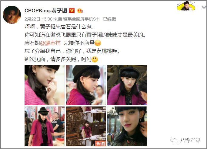 黄子韬在微博很少提及其他人的(傲娇boy的微博只为自己“带盐”),却专门拿出“黄桃桃”,要挑战“朱碧石”哈哈哈